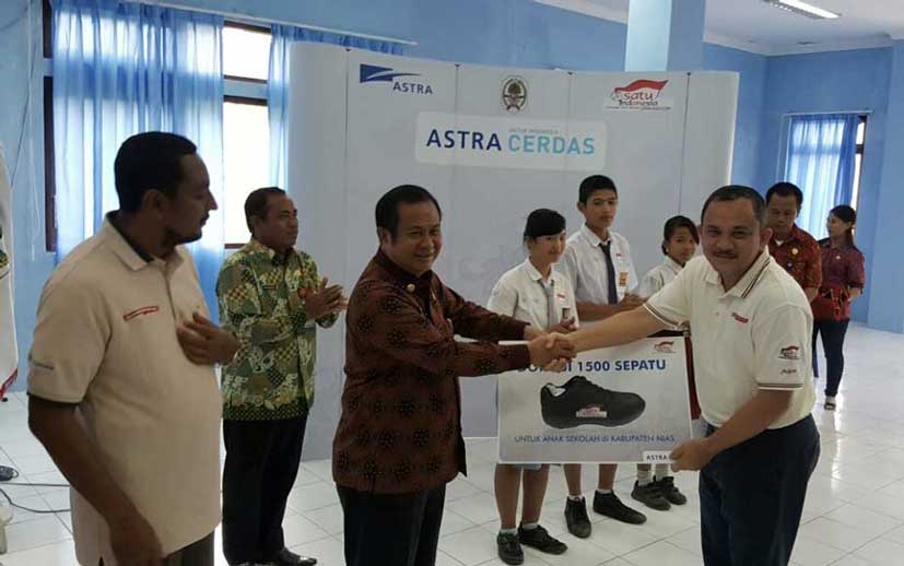 MIMBAR-RAKYAT.com (Jakarta) – PT Astra International Tbk menyerahkan 1.500 pasang sepatu kepada murid sekolah di Kabupaten Nias, Sumatera Utara, Kamis.