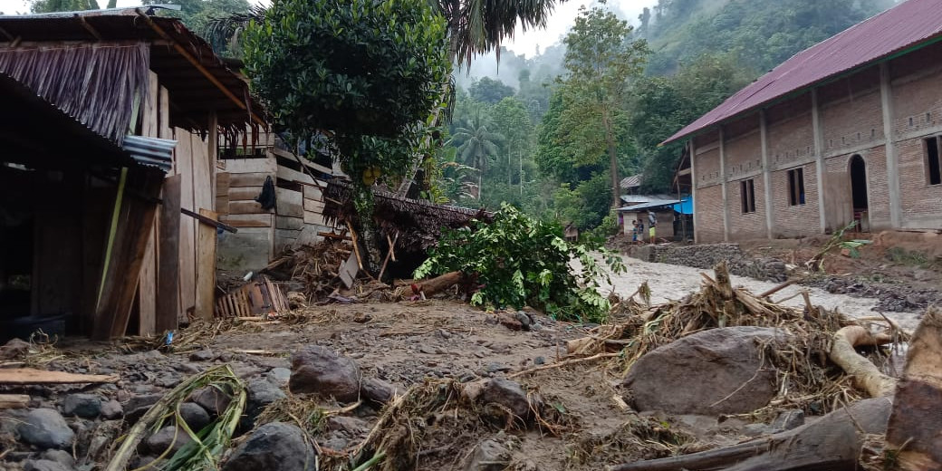 Kondisi pasca banjir dan tanah longsor yang melanda Kecamatan Tabulahan, Kabupaten Mamasa, Provinsi Sulawesi Barat, pada Sabtu (4/9). (Foto: BPBD Kabupaten Mamasa)