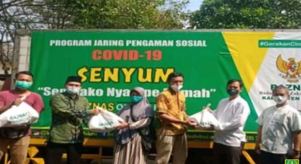 Mimbar-Rakyat.com (Bekasi)- Melalui program jaring pengaman sosial Covid-19  ‘Senyum’ (  Sembako Nyampe Rumah, Badan Amil Zakat (Baznas) Kabupaten Bekasi menyalurkan bantuan untuk warga terkonfirmasi positif Covid-19 yang sedang menjalani isolasi mandiri (isoman) di masa PPKM Darurat.