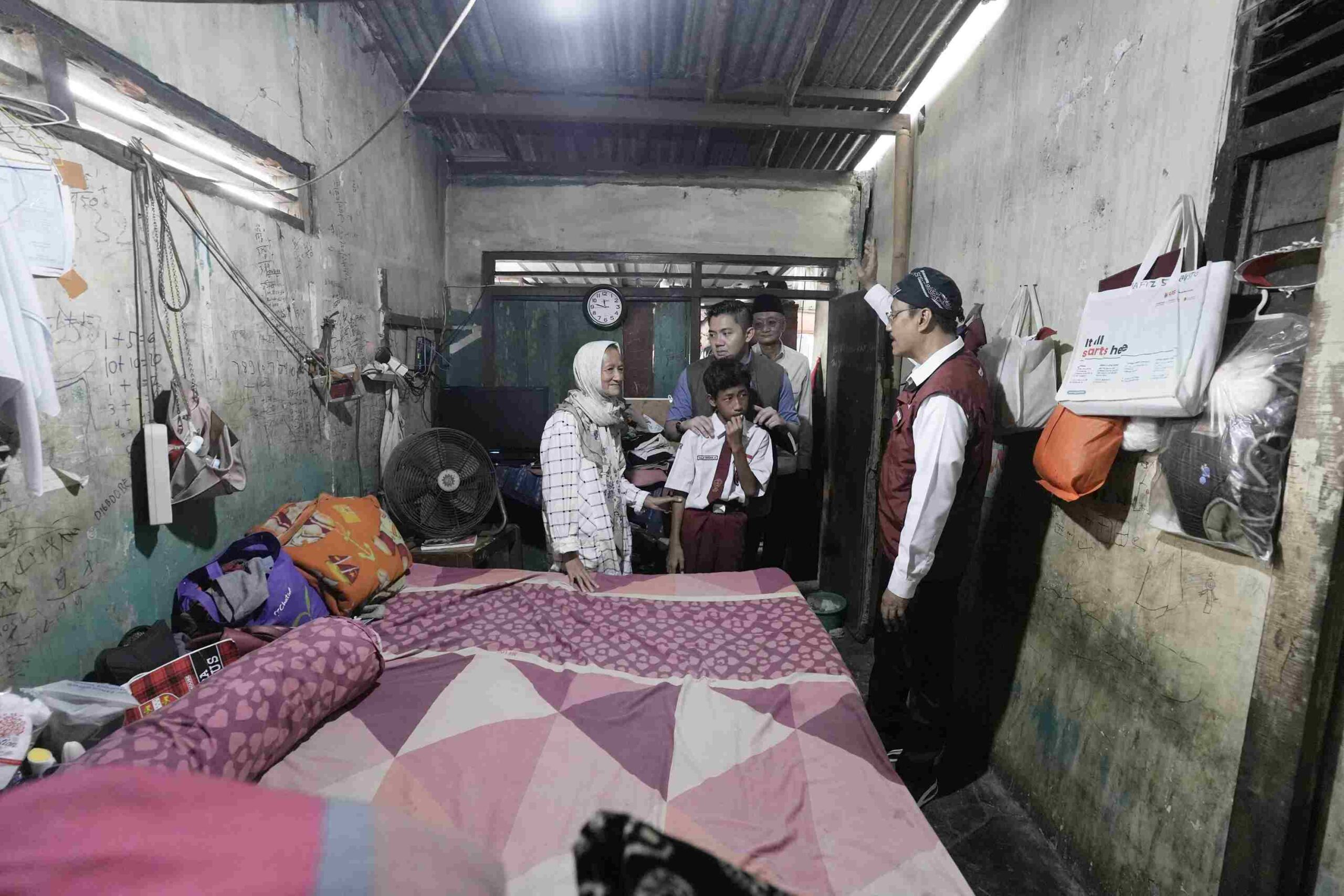 Rumah kontrakan kediaman Galih itu, Minggu (29/6-2025) ditinjau beberapa menteri, Sekretaris Kabinet Teddy Indra Wijaya, Menteri Sosial Saifullah Yusuf (Gus Ipul), Menteri Pekerjaan Umum Dody Hanggodo, dan Wakil Menteri Sosial Agus Jabo Priyono. peninjau dilakukan terkait dengan Galih, seorang calon siswa Sekolah Rakyat, yang masuk kategori desil 1 dalam Data Terpadu Sosial Ekonomi Nasional (DTSEN), Minggu. Kunjungan ini menjadi bentuk nyata kepedulian pemerintah terhadap keluarga yang hidup dalam kemiskinan ekstrem, terkait dengan pendidikan.