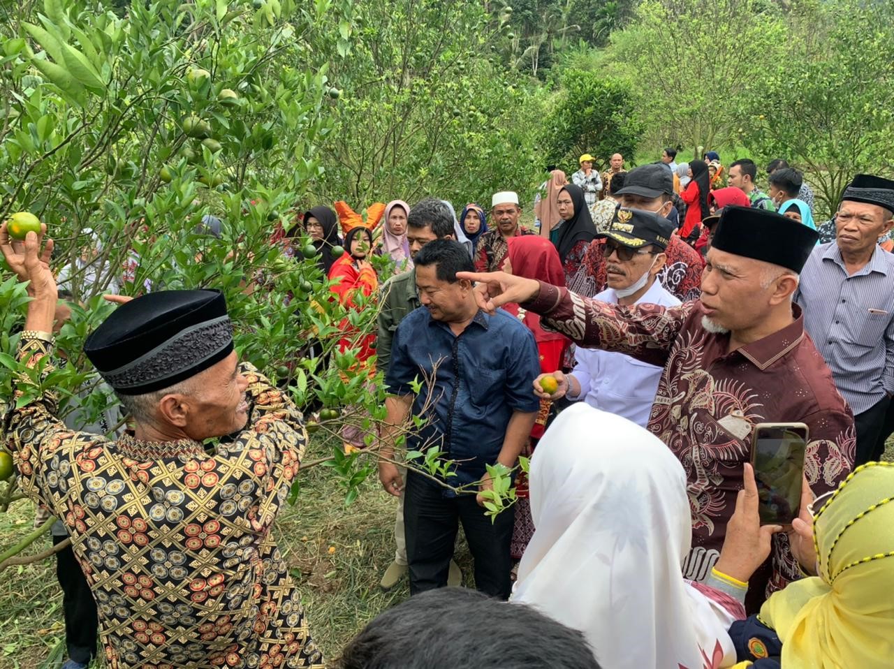 “Kita perbanyak aktivitas dan produktivitas pertanian, kelompok tani tidak cukup dengan bertanam satu komoditi saja. Variasi kegiatan pertanian harus ditingkatkan, seperti disini, ada jeruk, juga ada gula aren, ada juga ternak untuk menghasilkan pupuk kandang, nanti dagingnya bisa dijual, jadi pendapatan petani semakin meningkat,” lanjutnya lagi.