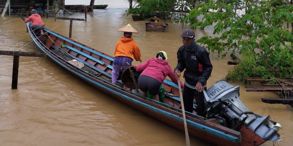 Menegutip bnpb.go.id, BPBD bersama perangkat daerah setempat menggunakan perahu dalam mendukung mobilisasi bantuan logistik dan upaya lain penanganan banjir di dua desa terdampak.