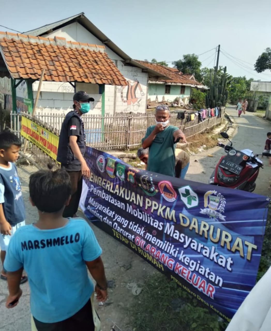 Mimbar-Rakyat.Com ( Bekasi)- Guna memutus rantai penyebaran virus Covid 19 , warga Kampung Teluk Haur, Desa Karang Haur , Kecamatan Pebayuran, Kabupaten Bekasi, lakukann penutupan jalan di setiap gang yang biasa dilewati untuk masuk keluar kampung,