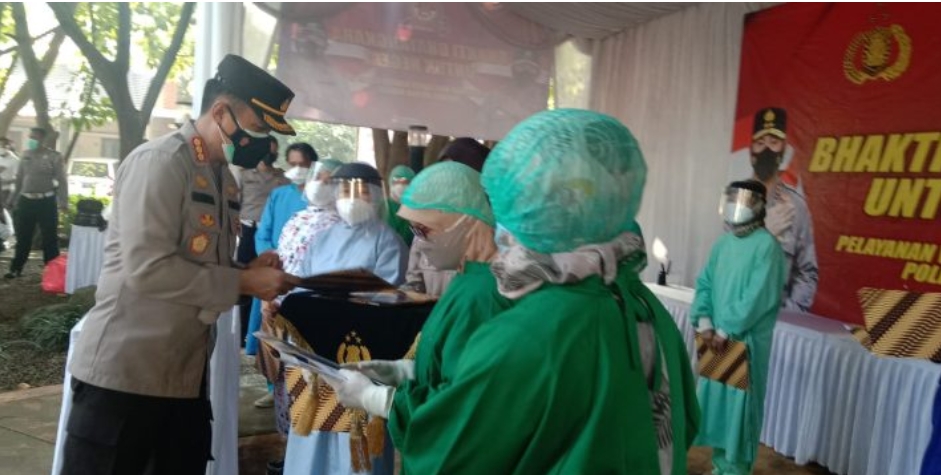 Sementara itu pada kegiatan Gerai Vaksin Presisi di Grand Wisata tersebut, Kepolisian Polres Metro Bekasi memberikan piagam penghargaan kepada tenaga kesehatan yang terus bekerja tanpa mengenal lelah selama pandemi Covid-19.