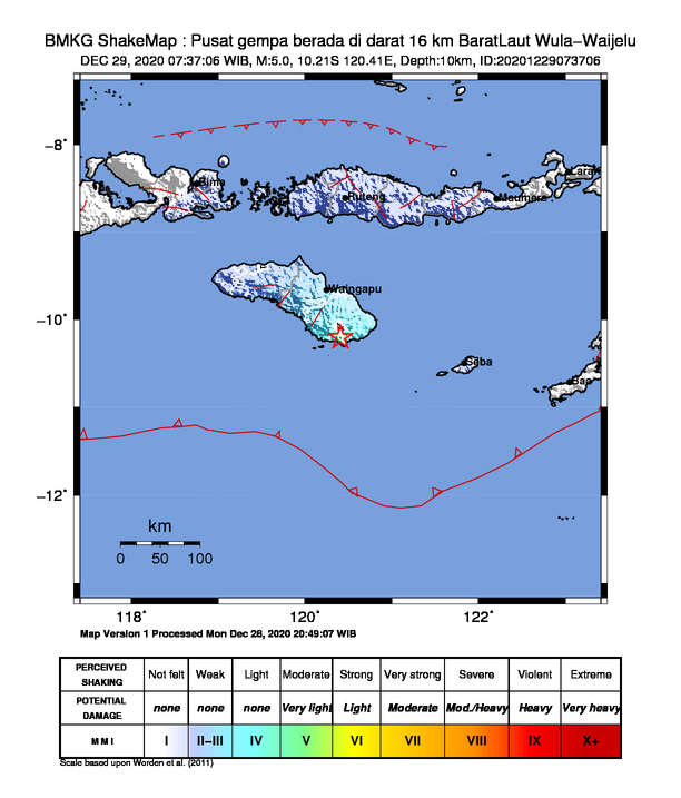 Mimbar-Rayat.com (Jakarta) – Gempa bumi dengan skala magnitudo 5,0 terjadi di Wula Waijelu, Nusa Tenggara Timur (NTT), Selasa (29/12) pagi puul 07:37:06 WIB. Demikian diumumkan Badan Meteorologi Klimatologi Geofisika (BMG).