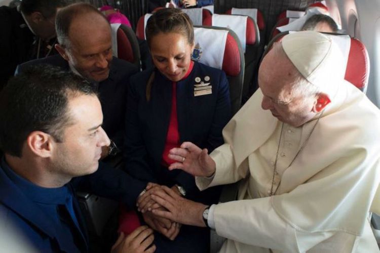 Paus nikahkan pramugara dan pramugari di dalam pesawat