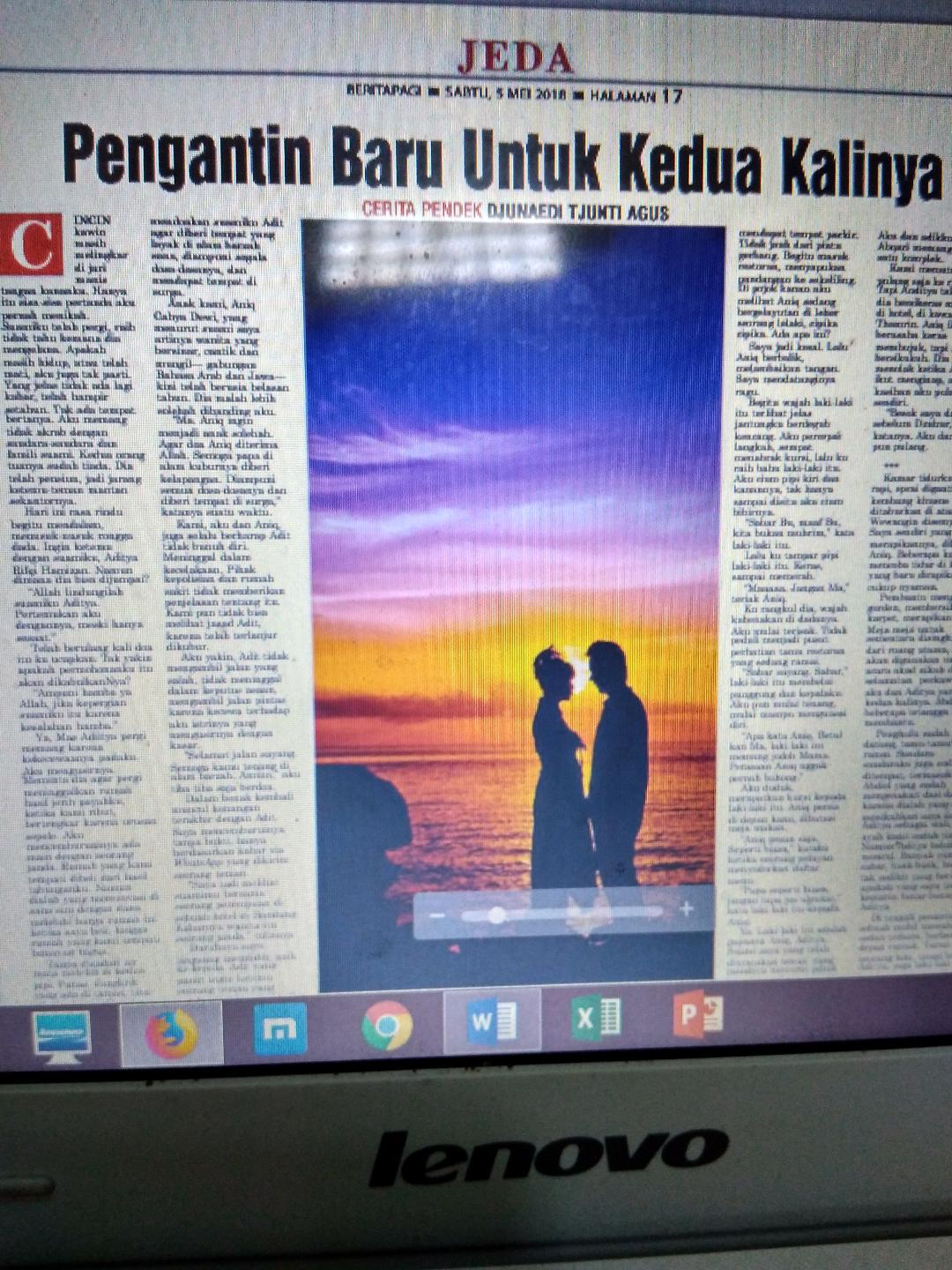 “Ma. Jangan rapat-rapat. Kita bukan muhrim,” katanya. Saya hanya tersipu lalu mencubit pinggangnya sampai dia berteriak.