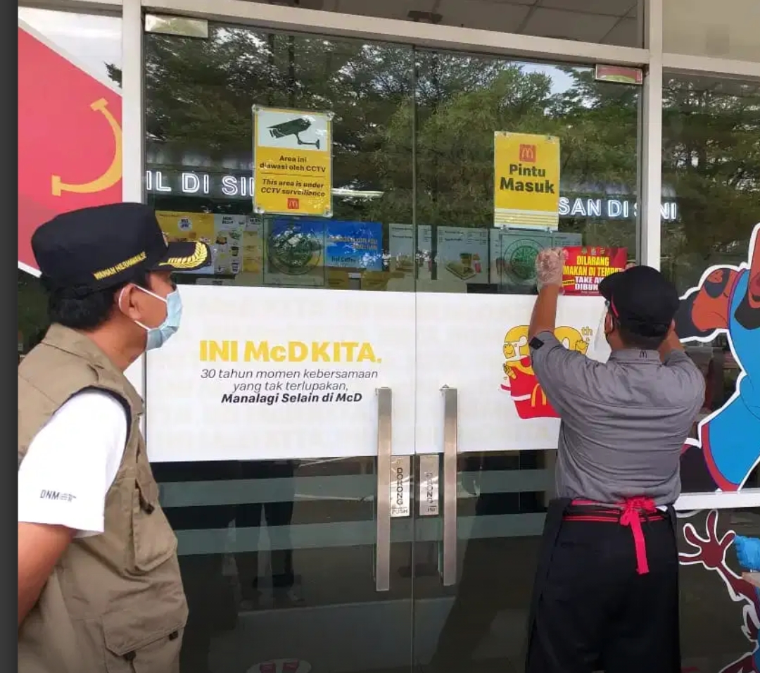 Dengan melakukan penyisiran petugas mendatangi rumah makan Kawasan Meli Melo Harapan indah. Di tempat tersebut petugas melakukan sosialisasi dan mengimbau agar pedagang melayani makan di tempat dan hanya pembeli untuk ditake away atau dibungkus.