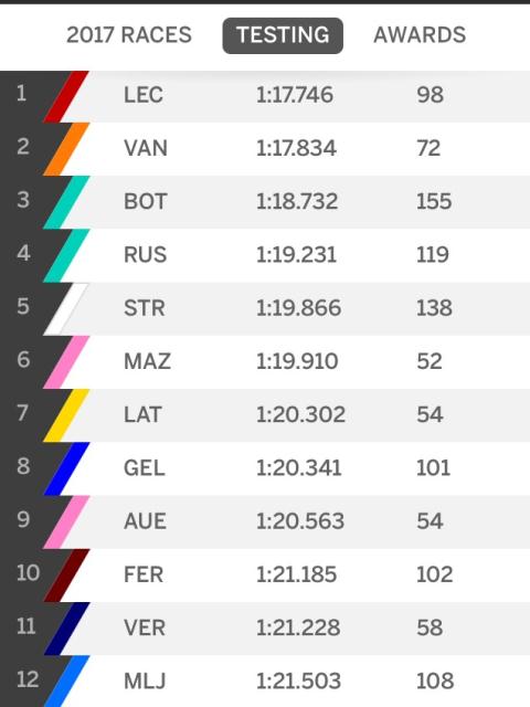 Bersama Ferrari, dia mejadi pebalap dengan catatan putaran tercepat (1 menit 17,746 detik). Stoffel Vandoorne (Belgia) dari tim McLaren berada di urutan kedua. Vandoorne merupakan juara GP2 Series (sebelum berganti nama menjadi Formula 2) 2015. Sementara itu, Valtteri Bottas (Mercedes) mencatat putaran tercepat ketiga. Bottas turun hanya untuk mengetes ban Pirelli, sehingga tidak banyak mengubah setting-an mobil dan jumlah lap yg dilahap pun lebih banyak.