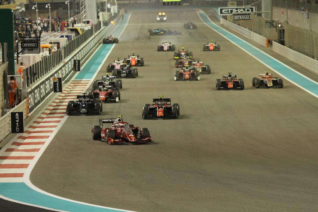 Balapan terakhir Formula 2 berlangsung cukup ketat. Pada balapan Feauture hari Sabtu, balapan sudah kacau sejak start dimulai. Mobil Nicholas Latifi yang stall, tertabrak pebalap lain. De Vries yang start dari posisi kedua, sempat menyodok ke posisi terdepan. Namun, peluang mempertahankan posisi terdepan lepas, setelah menjalani pit stop.